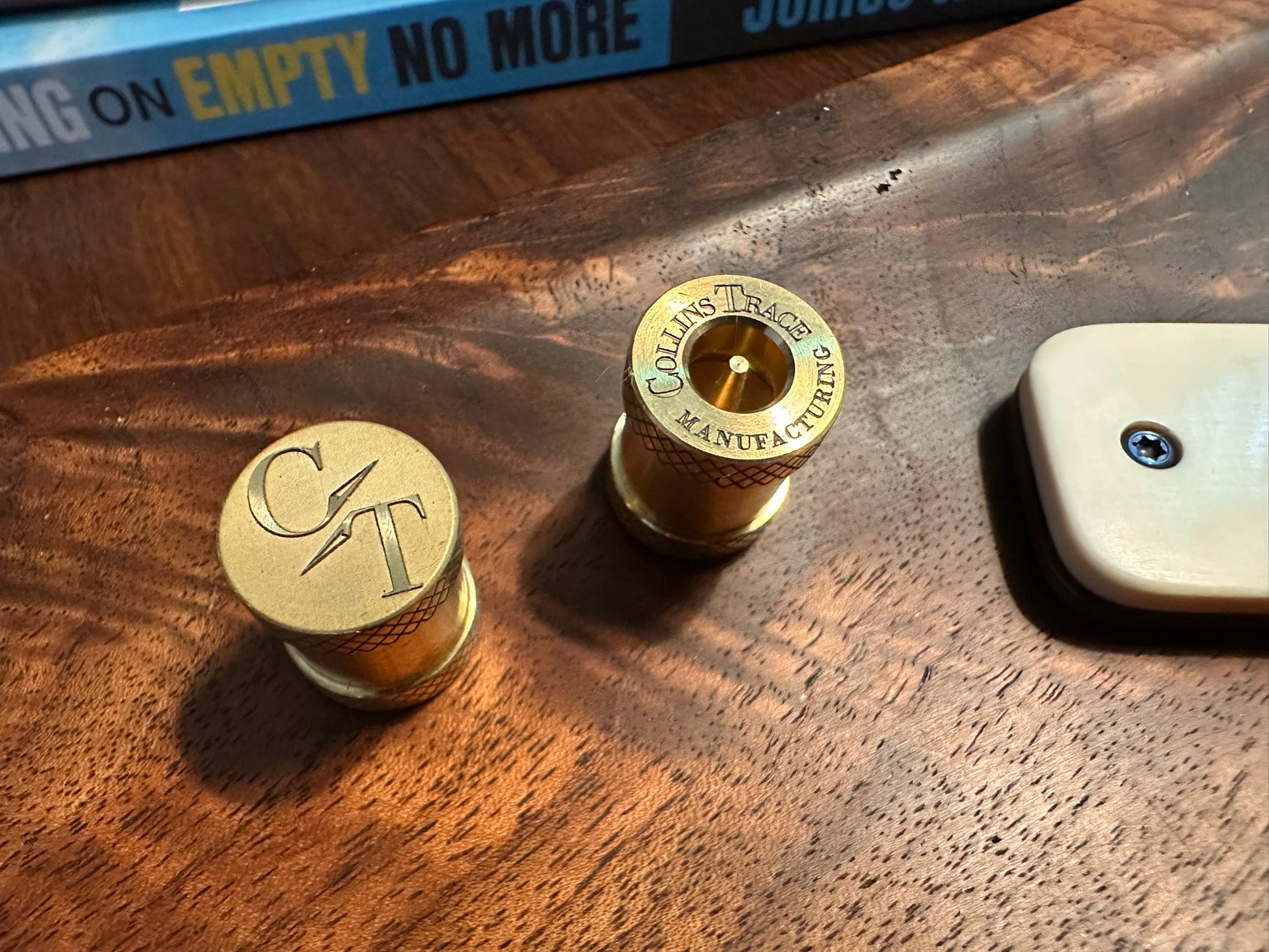 This is the first The End Bead made with lasered knurling and reversed logo. The metal is brass and untreated in all its glory.